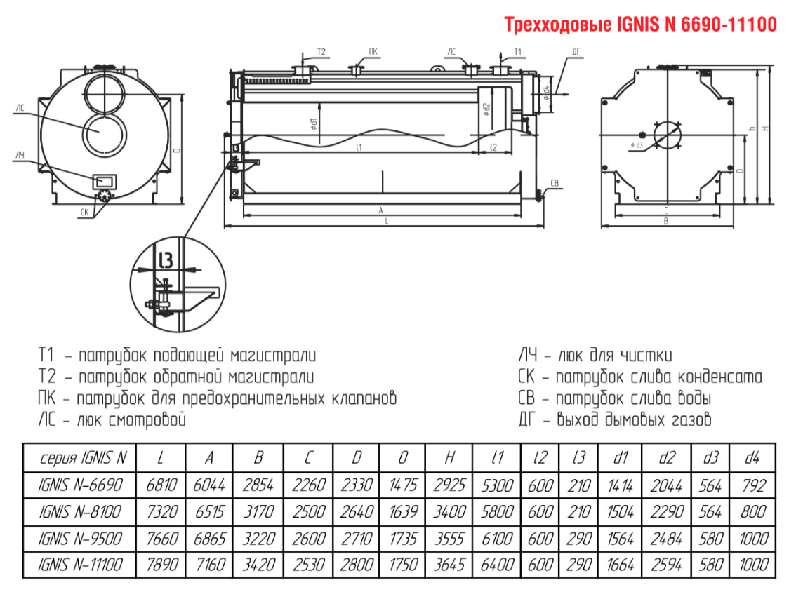 Технические характеристики водогрейного трёхходового котла для тепличных хозяйств ARCUS IGNIS N-8100
