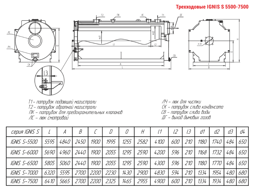 Технические характеристики водогрейного трёхходового котла ARCUS IGNIS S-6500
